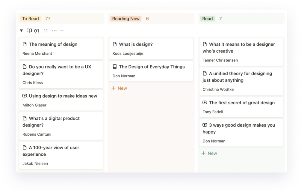 This is a tracker for “the Guide to Design”, a free online UX learning material by UX Collective.